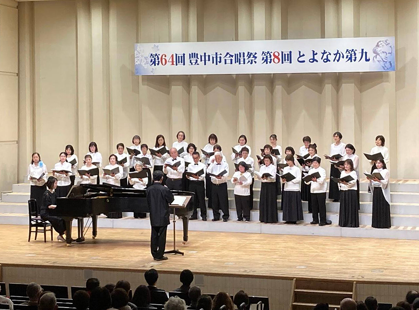 2016年の豊中市立文化芸術センタープレオープンイベント「みんなのコーラスフェスティバル」の中で誕生し、翌2017年から豊中市合唱祭の第2部として、同日の夜に開催。 固定されたメンバーではなく、その年ごとに市民のみなさまに参加を呼びかけ、みんなで練習を重ねて本番に臨んでいます。 淵源は2007年12月に東豊台小学校校区で開催された「東豊台第九」に合唱協会として合唱指導・指揮・合唱で参画し、延べ10回をもって終了。その後合唱協会主催で継続し、同じ楽しみを持つ人たちと知り合える場として、毎年多くの市民のみなさまが参加されています。 第九は「一度覚えたら一生の宝」と言われています。歌えない部分は歌える人が支え、歌える部分は歌える喜びが溢れる。「とよなか第九合唱団」はそんな温かいコーラスを目指しています。